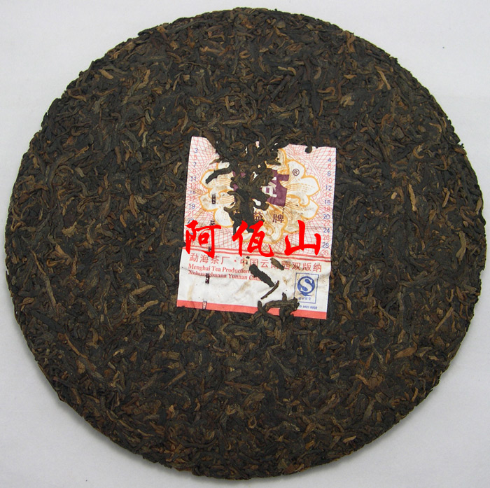 A classic ripe Pu-erh tea cake from Menghai Tea Factory (Dayi Brand), manufactured according to traditional recipe of the year 1975 by using the 5th grade loose Pu-erh as material (inside part). This 75